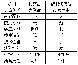 系列埋地式整體化糞池與磚混化糞池經濟技術指標對比