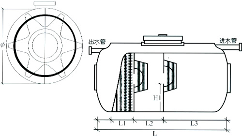 ● 外觀為圓形,筒體中沒有方鋼加強筋,兩端外側用車輪型封頭凹凸面設計,抗沖擊,抗水壓力學性能好,有效容積大,環流泛水科學導流,不堵塞,處理效率高。