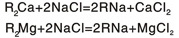 吸附鈣、鎂離子飽和后的樹脂經過鈉鹽溶液處理,可重新轉化為鈉型樹脂而恢復交換能力,這一過程稱為樹脂的再生過程,其反應方程式為: