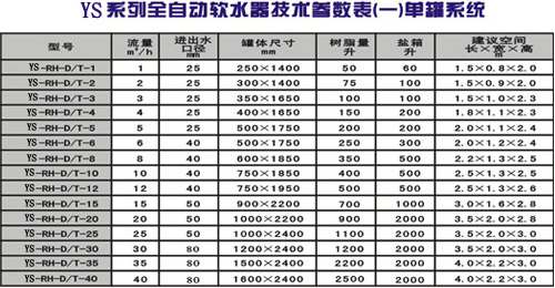 全自動軟水器的工作參數